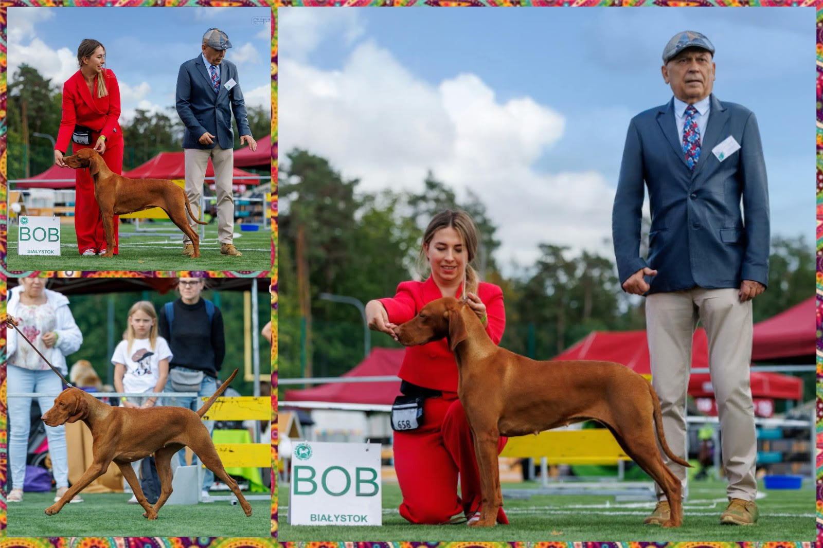 Zwycięzca Rasy, Najlepszy Pies, CACIB, CAC, ocena doskonała, lokata 1 w klasie otwartej.