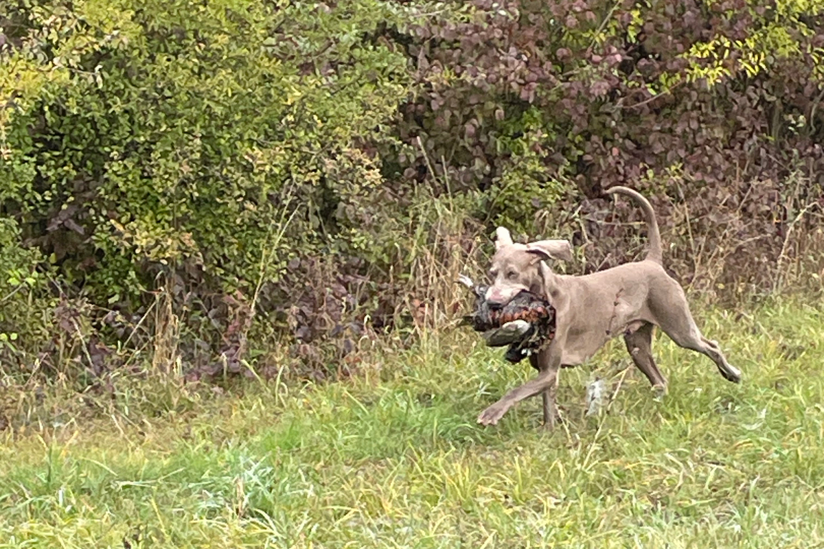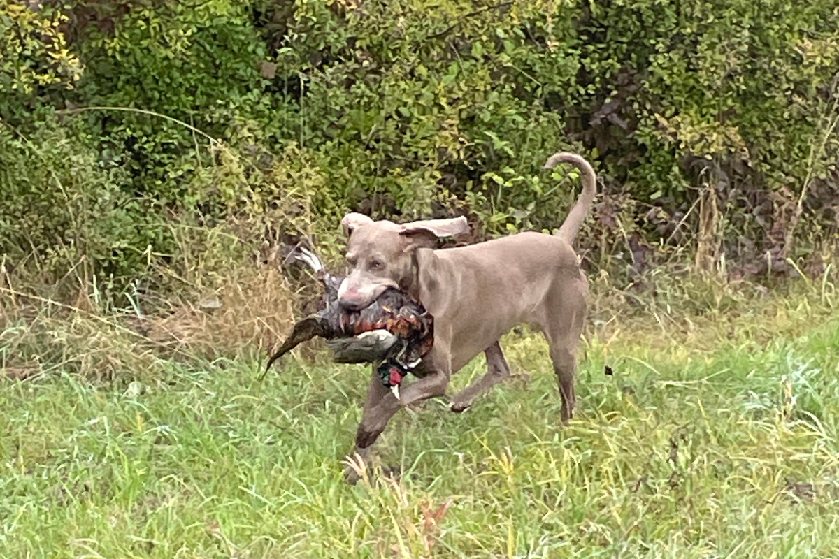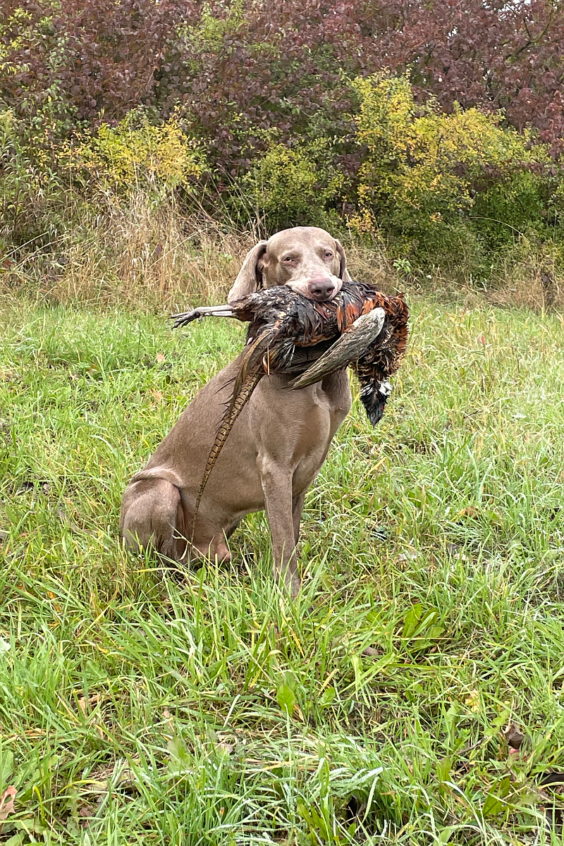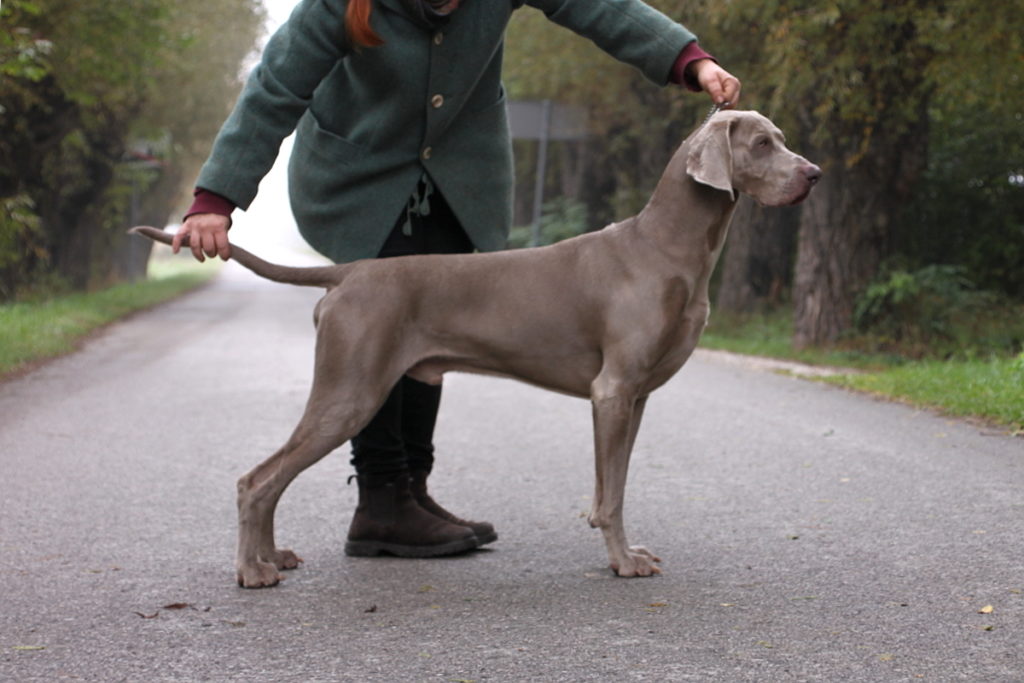Slavinja ATOM – Oji is a young stud bred in our kennel. He is a dog with exceptional working qualities, of medium size with proportional body structure and well-defined musculature. He has a beautiful silvery coat and delicate silky fur. He is the son of RELOADED Just Dance and Slavinja I’JARUNA – our gem in the kennel! Oji owes his incredibly balanced and cheerful character to his lineage. He is not a conflict-prone dog and gets along great with other males. He is a Weimaraner through and through – he learns quickly, has a huge willingness to work, a classic point, and gentle retrieve. He covers the field widely and eagerly, utilizing the upper and lower wind perfectly, and water is his element. At home, he is a couch potato, loving his human. Relationships with humans are the most important to him, and therefore he prefers to cooperate based on social rewards. Those interested in using Oji in their breeding program are welcome to contact us.
